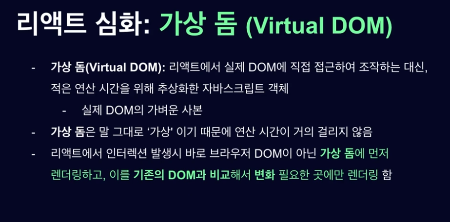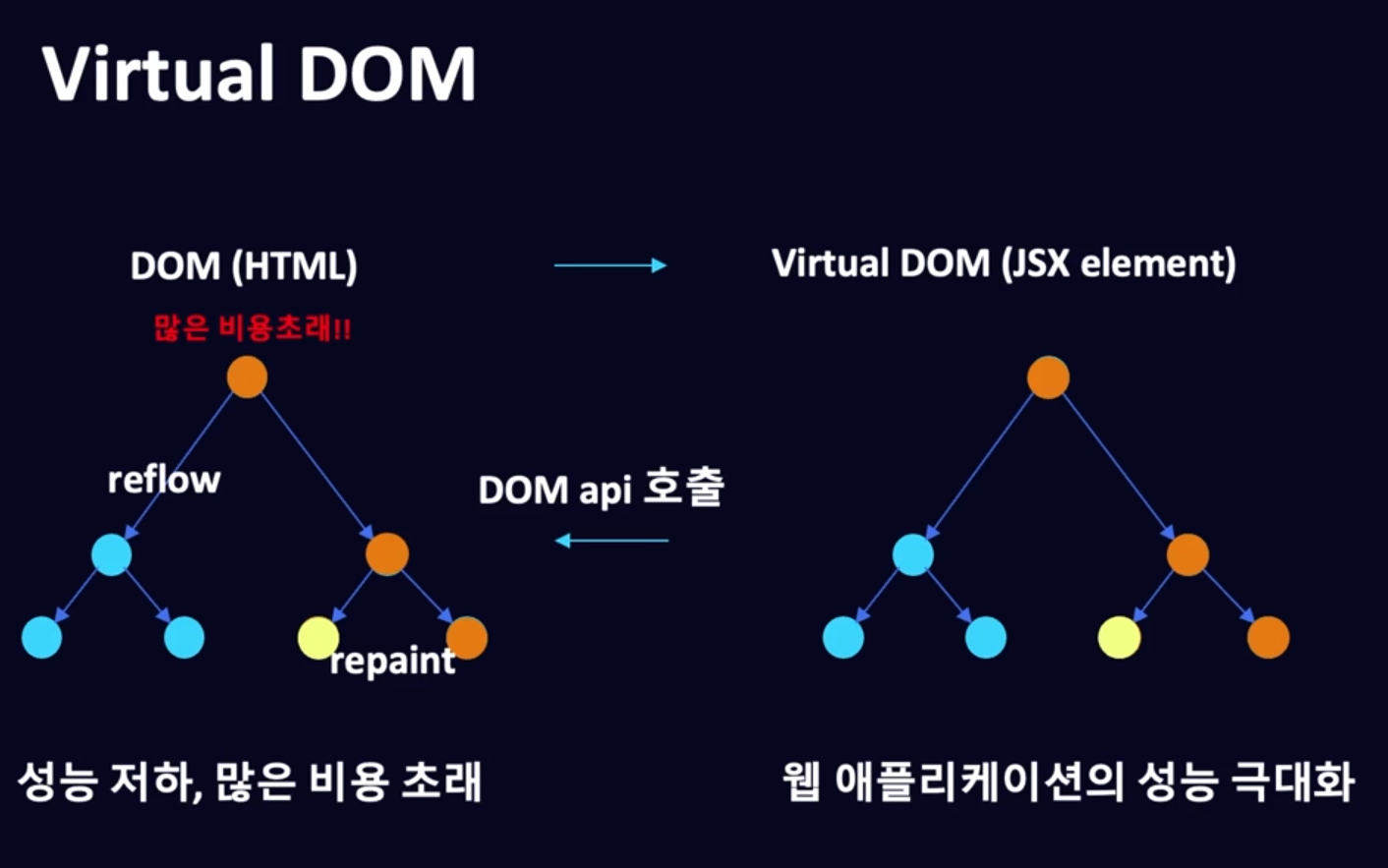 기존의 DOM(HTML)의 성능 저하, 많은 비용 초래하는 것을 보완